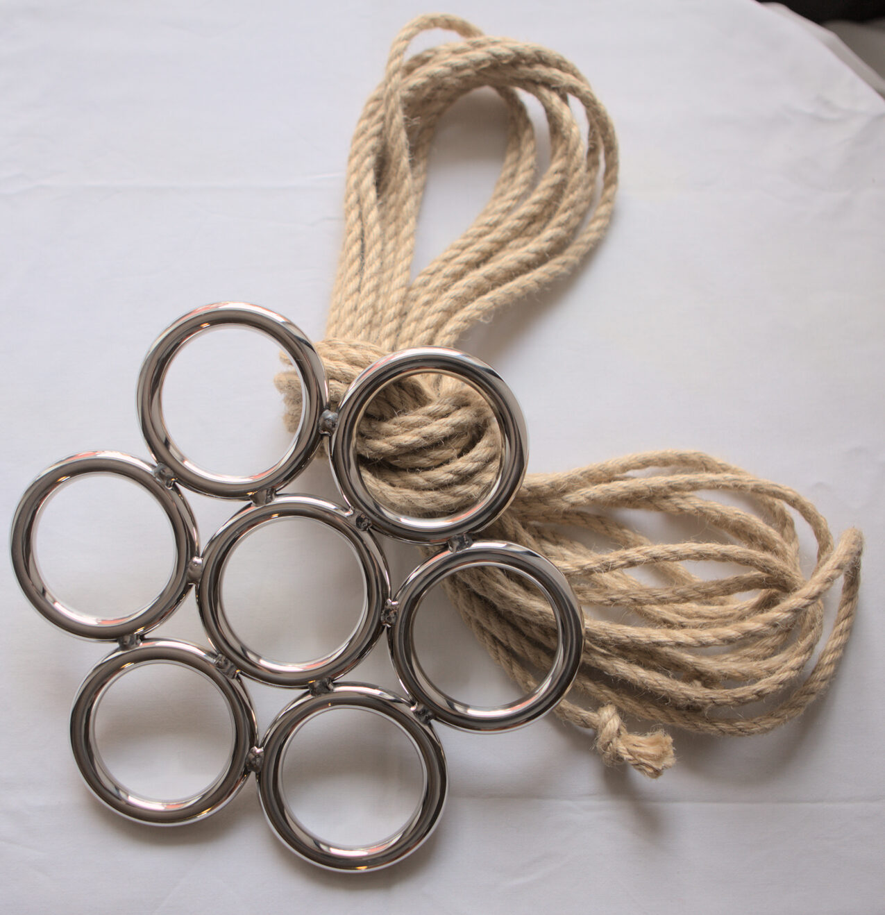 En ring for bruk til suspension som er oppdelt i 7 ulike hull. Dette gjør det enklere å sørge for at tau ikke overlapper og kommer i klem.