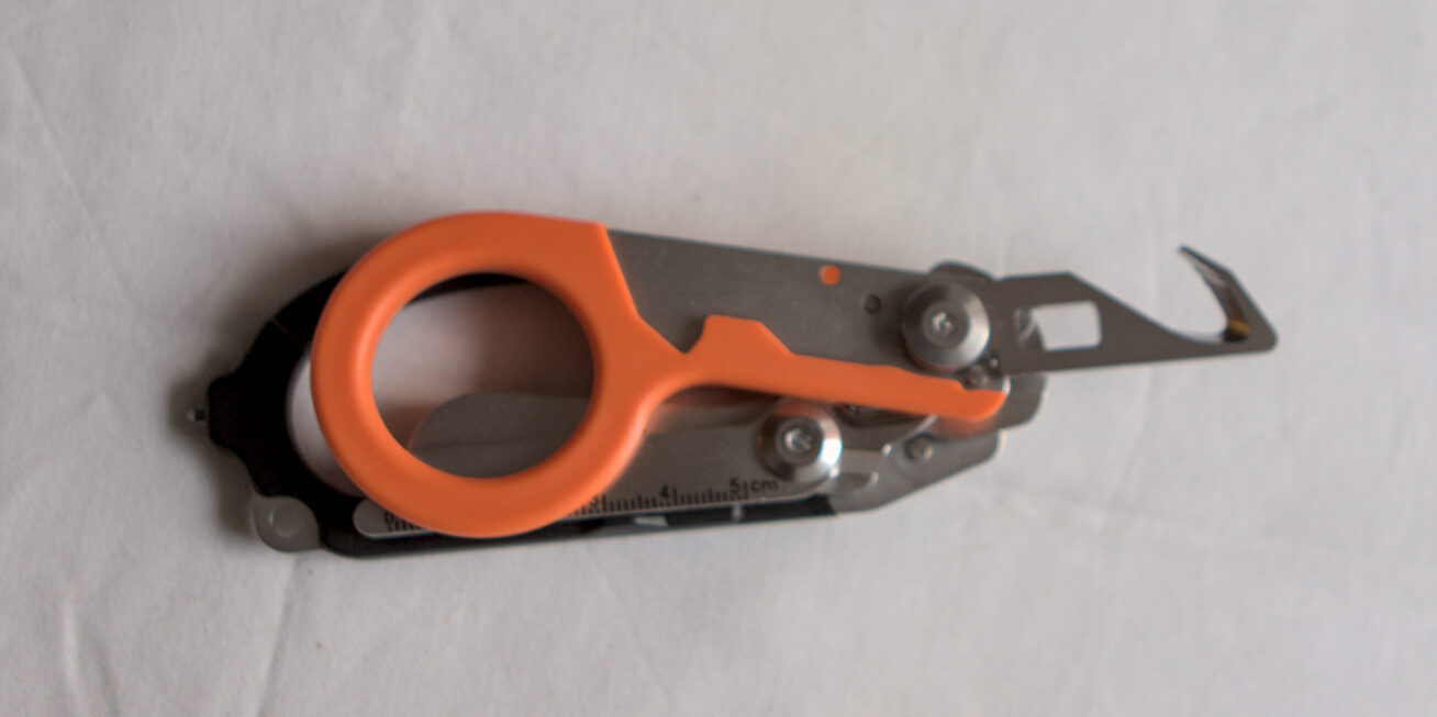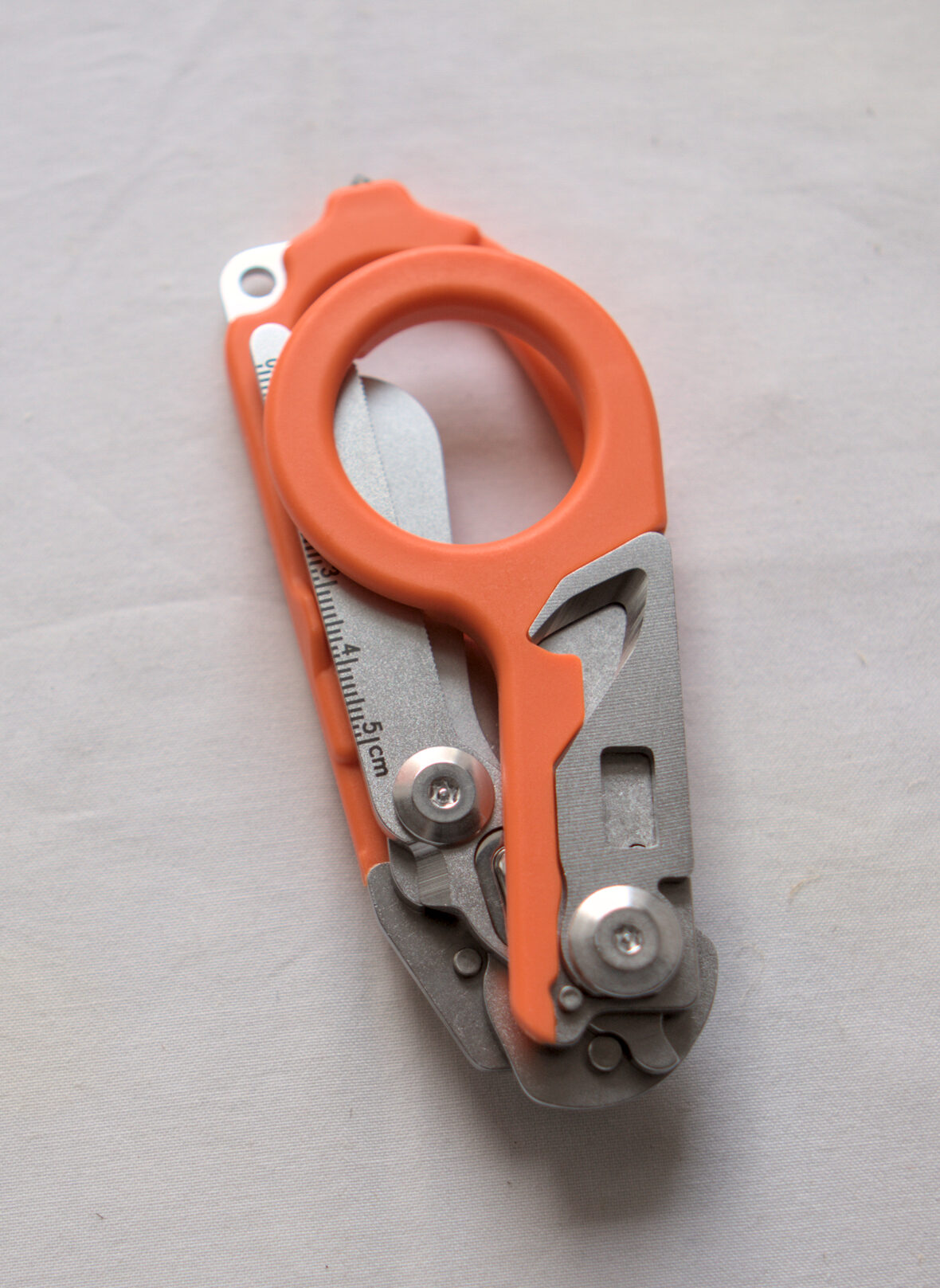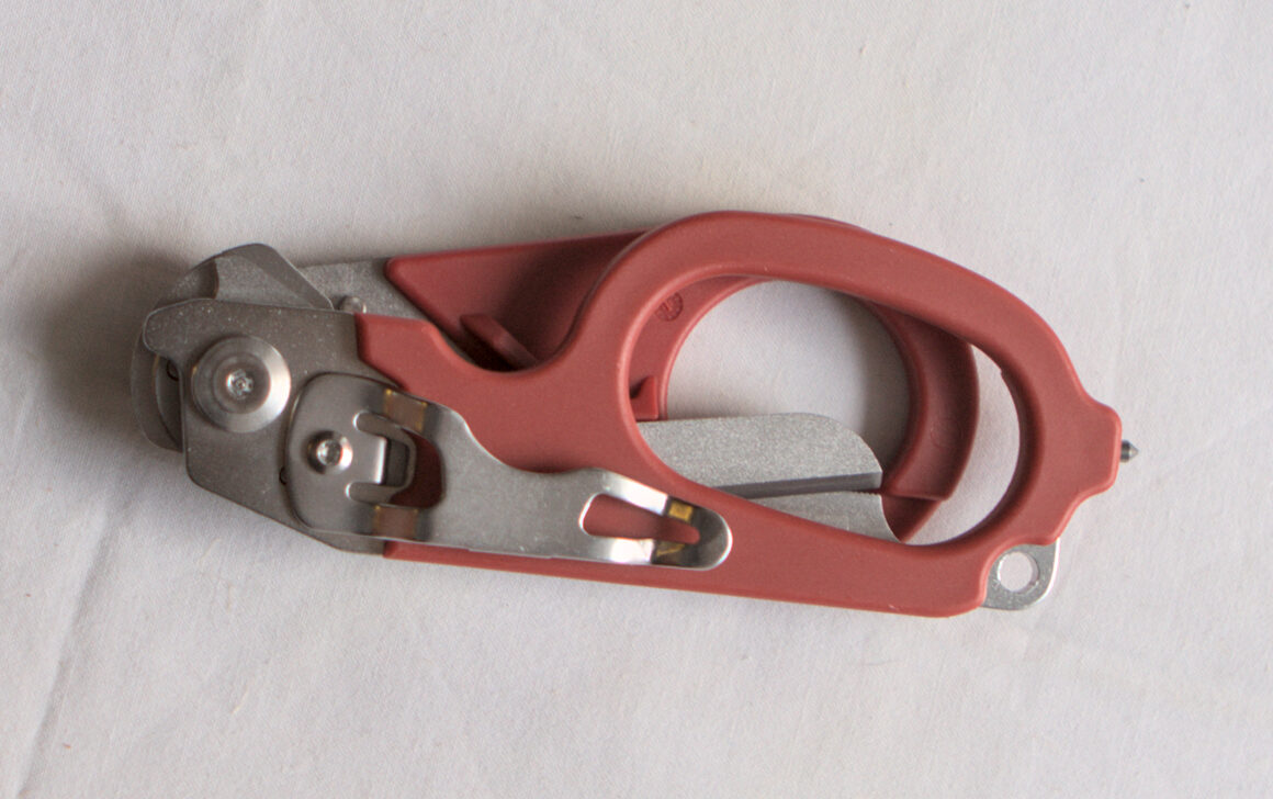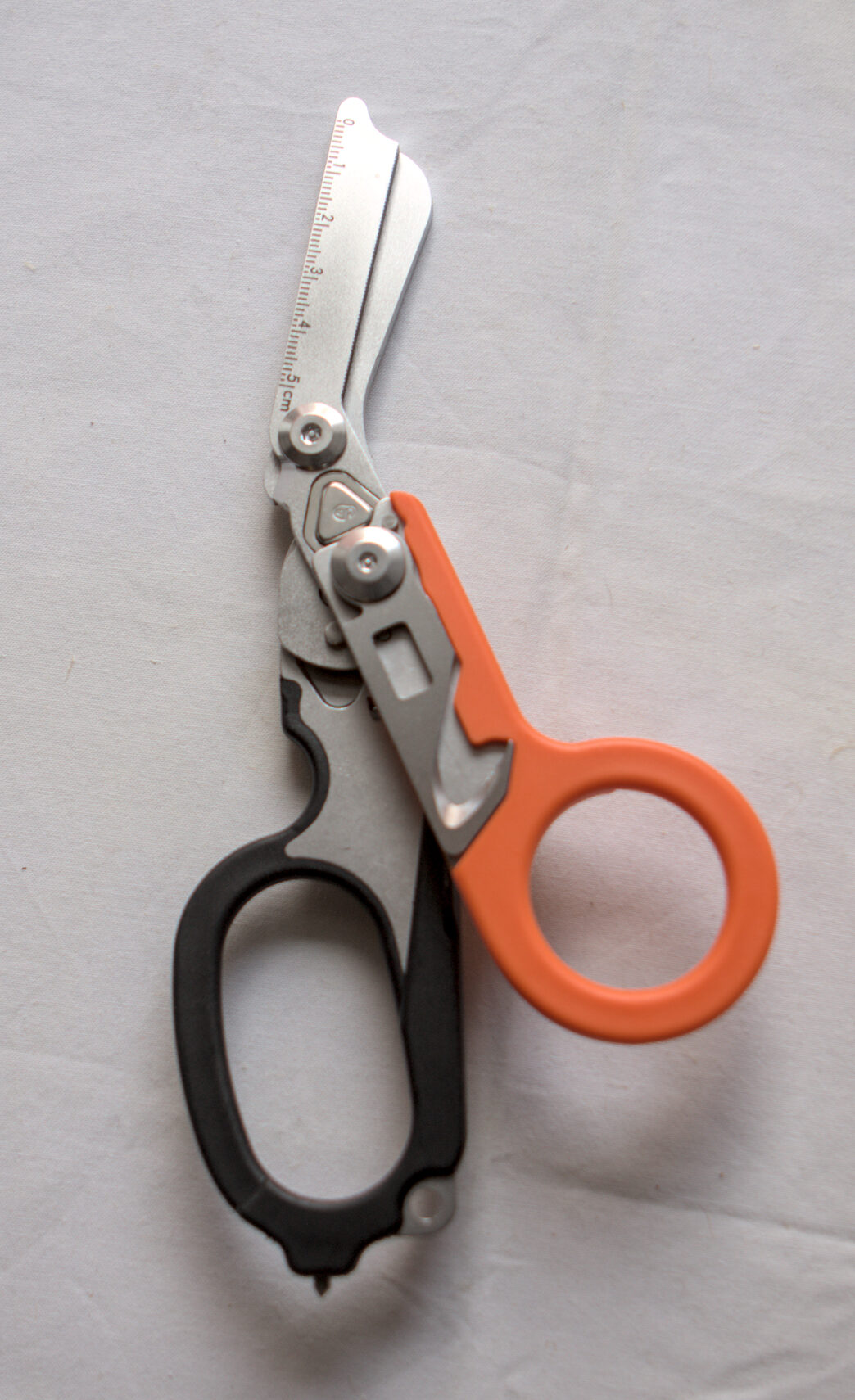 Saksen har i tillegg en stroppekniv, ståltrådkutter, glassknuser og linjal.