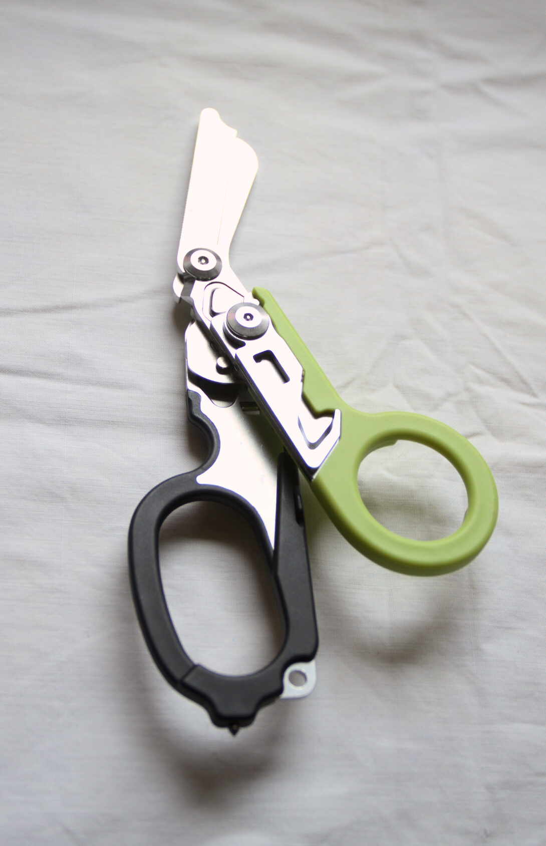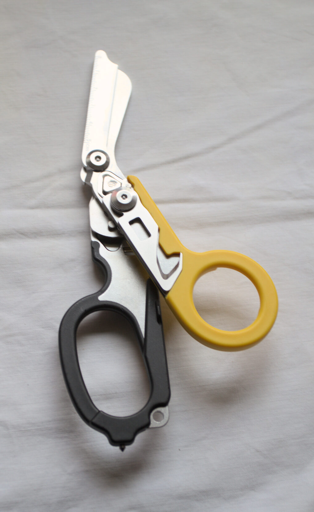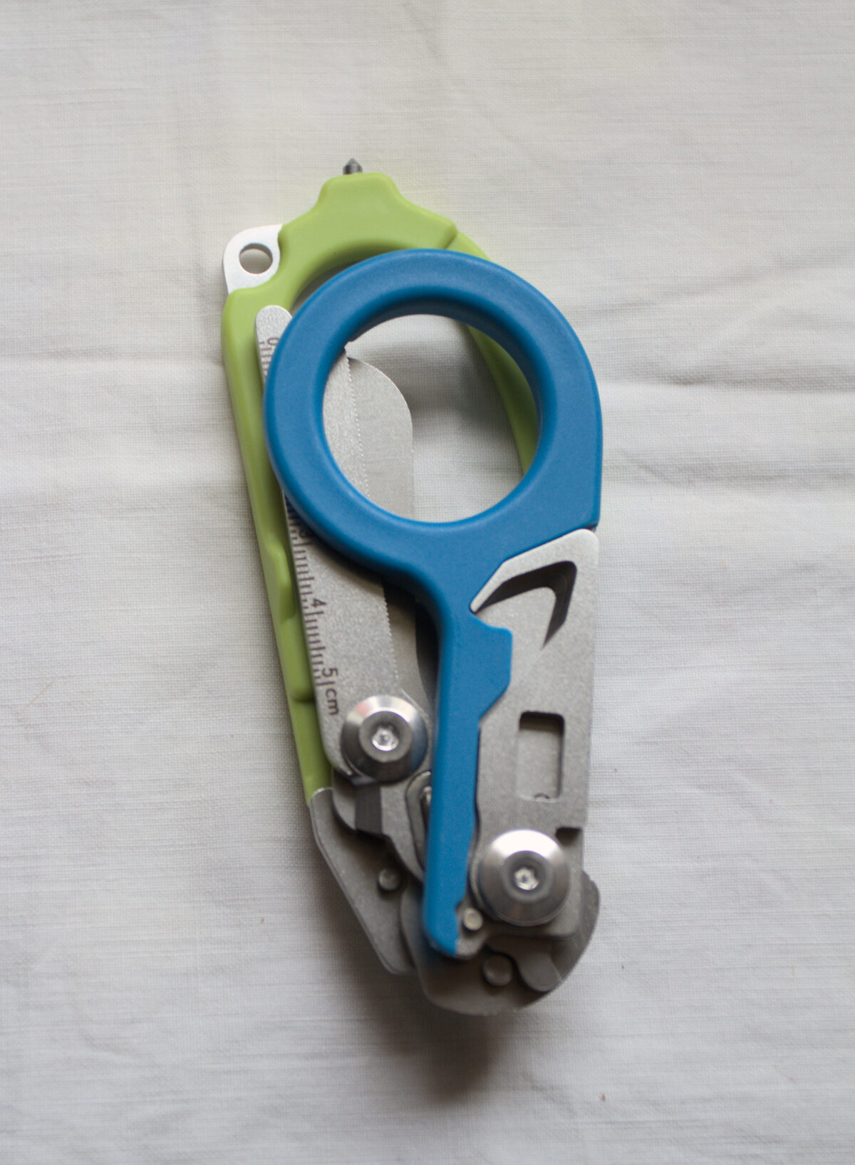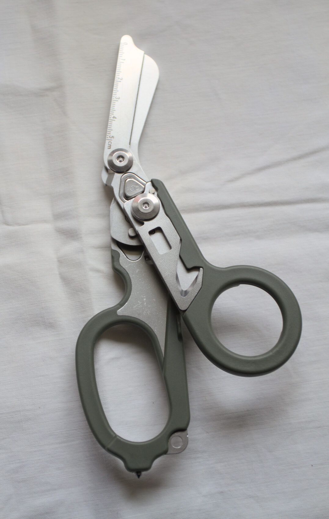 Saksen har i tillegg en stroppekniv, ståltrådkutter, glassknuser og linjal.