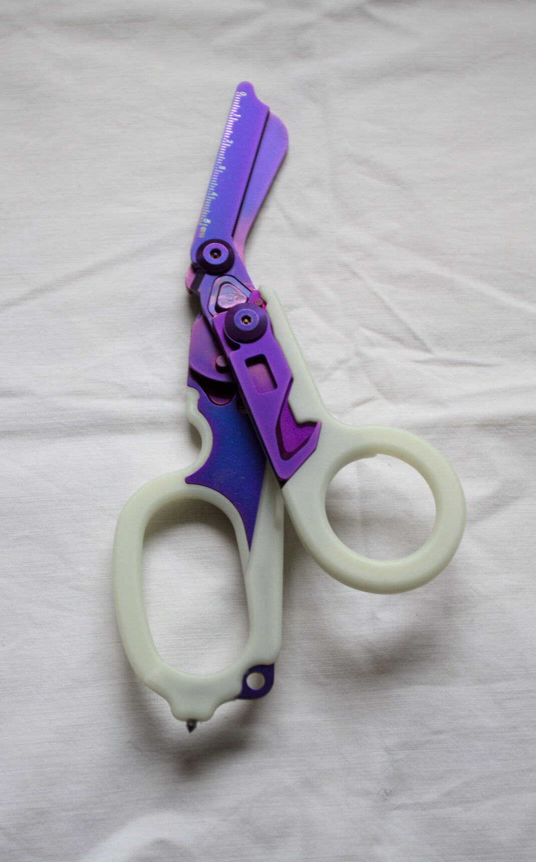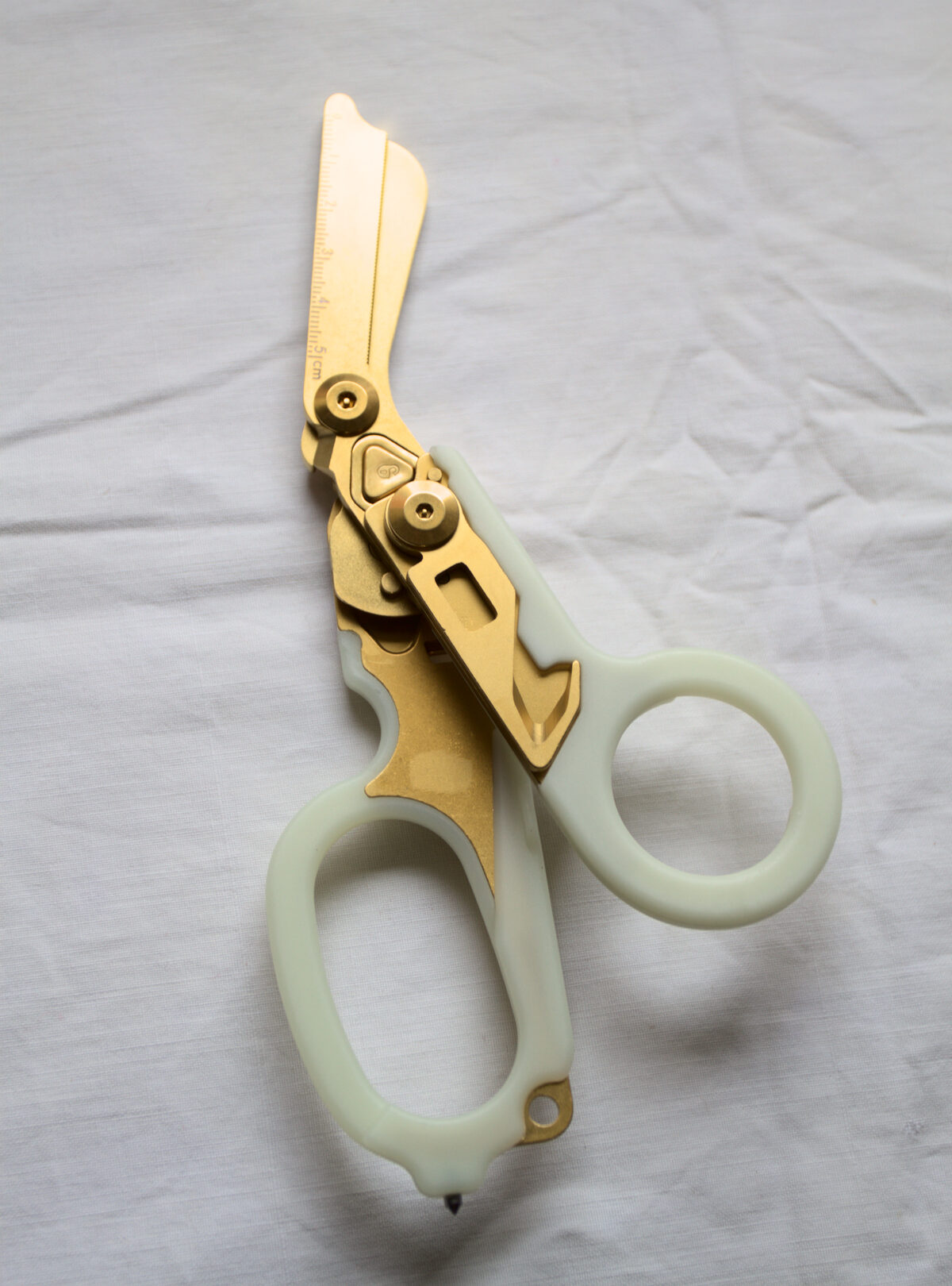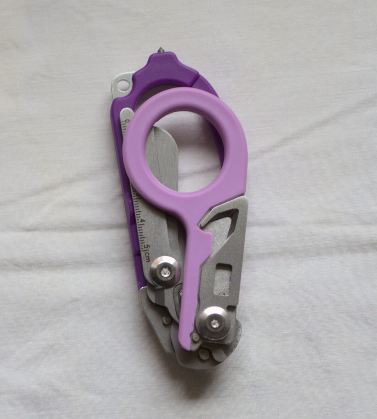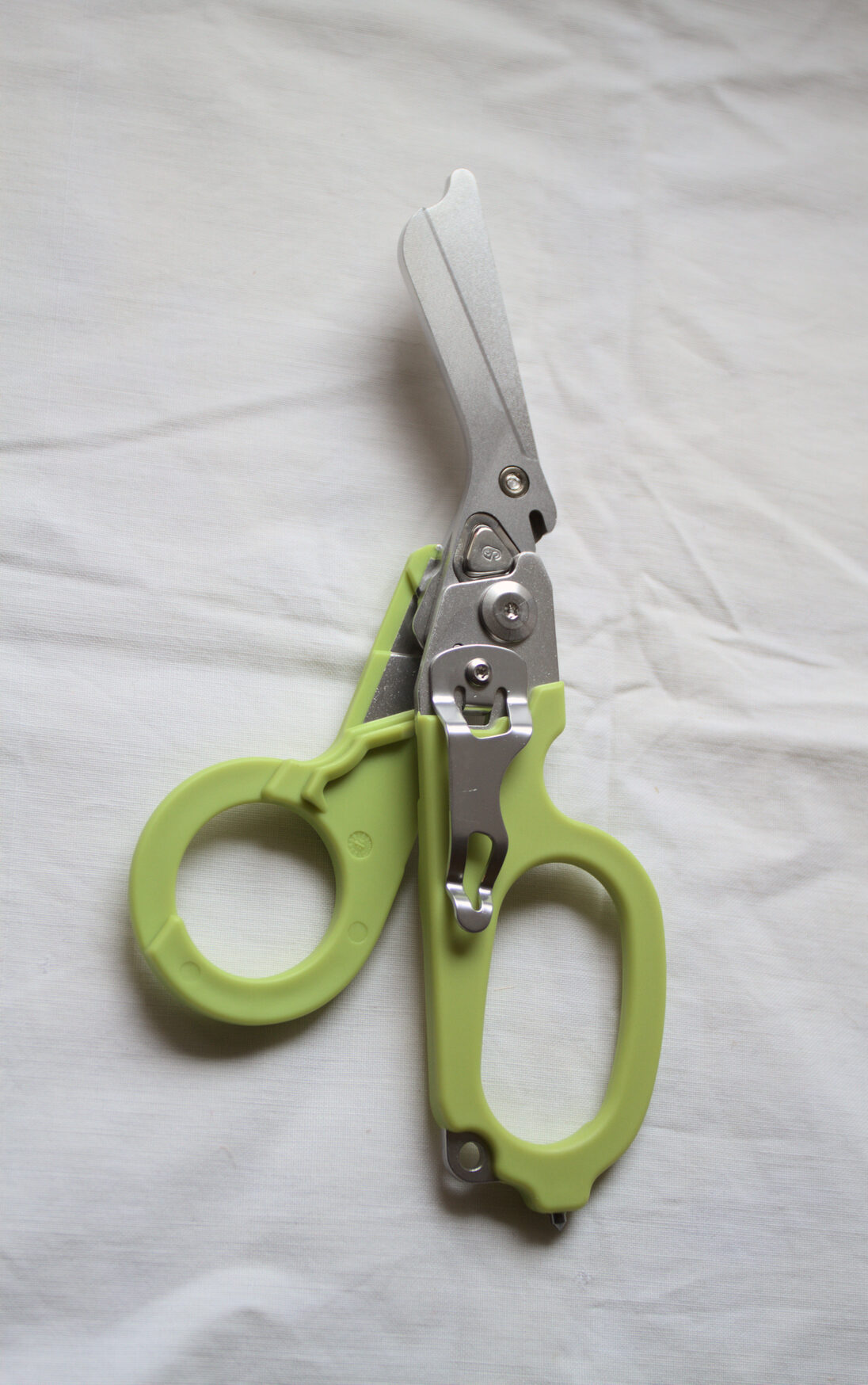 Saksen har i tillegg en stroppekniv, ståltrådkutter, glassknuser og linjal.